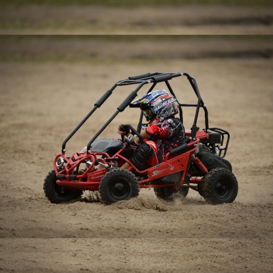 XTM enfants buggy est le mini d’entrée de gamme hors buggy route. Cela buggy kids convient aux enfants de plus de 6 ans. Conçu des meilleures poussettes d’essence pour les enfants dans notre esprit, il peut s’attaquer à des berges abruptes et coteaux de pistes boueuses épais ! Vous pouvez définir la vitesse souhaitée lorsque vous les contrôles définissez la simplicité avec stop / go pédales et un réducteur de débit de gaz.